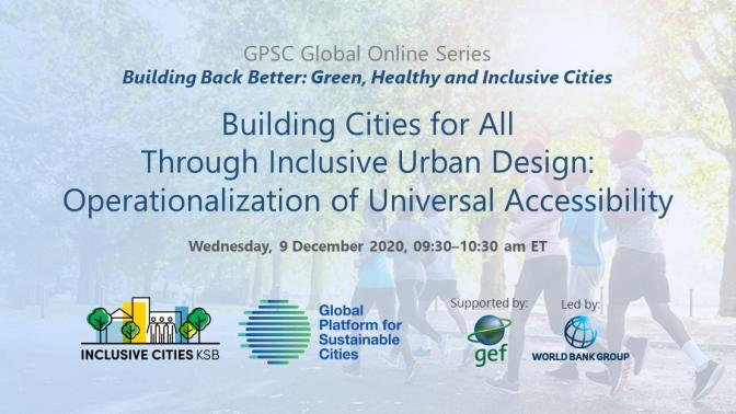 Celebrated every year, December 3rd is the International Day of Persons with Disabilities, a day to promote full and equal participation of persons with disabilities and to take action for the inclusion of persons with disabilities in all aspects of society and development. This year’s theme is Building Back Better: toward a disability-inclusive, accessible and sustainable post COVID-19 World. Organized by the Inclusive Cities Knowledge Silo Breaker (KSB) at the World Bank, this session will focus on the principles and application of universal accessibility toward making cities inclusive for all. It will introduce the concept of universal accessibility, share experiences of inclusive urban designs in slum upgrading operations and discuss their relevance in post-conflict and disaster contexts. The program will feature experiences from the ground as below.