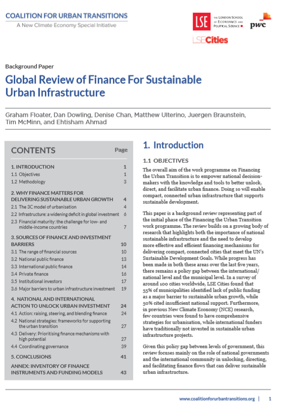 This paper is a background review that builds on a growing body of research that highlights both the importance of national sustainable infrastructure and the need to develop more effective and efficient financing mechanisms for delivering compact, connected cities that meet the UN’s Sustainable Development Goals.