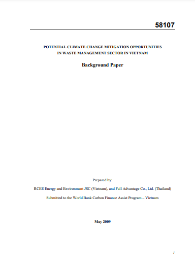 Potential Climate Change Mitigation Opportunities in Waste Management Sector in Vietnam