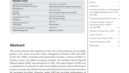 This study examines the expansion of the role of the producers of recyclable goods in the arena of Korean waste management between 1992 and 2010. In the late 1980s, increasing waste generation became