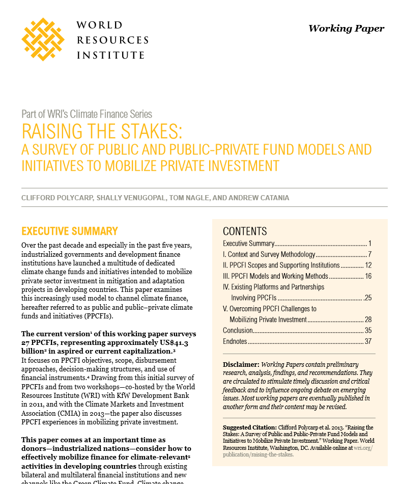 "Raising the Stakes: A Survey of Public and Public-Private Fund Models and Initiatives to Mobilize Private Investment"