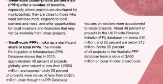 Small-scale public-private partnerships (PPPs) offer a number of benefits, especially where projects are developed by municipalities: they are close to those who need services most, respond to loca