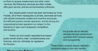 In developing countries, buses are the backbone of public transit, and the poor depend on them to access employment and other urban services.